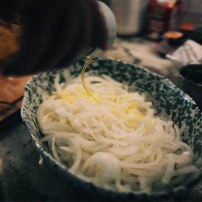 - 4 large yellow onions, thinly sliced