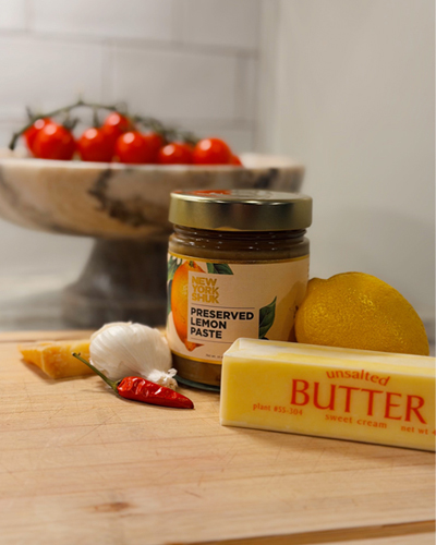 January is for fresh starts — and not just the ones that live on a vision board. One resolution we love? The six-second kiss. Couples therapists swear by it: six slow seconds to boost connection and release all the good feels. Conveniently, this pasta does most of the work. Antica Pasta Lemon Fettuccine, New York Shuk Preserved Lemon Paste, and fresh zest form a bright, glossy sauce that naturally makes lips pucker.