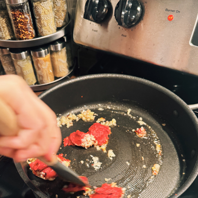 Add ½ lb of ground Italian sausage to pan and cook through before moving to the next step.